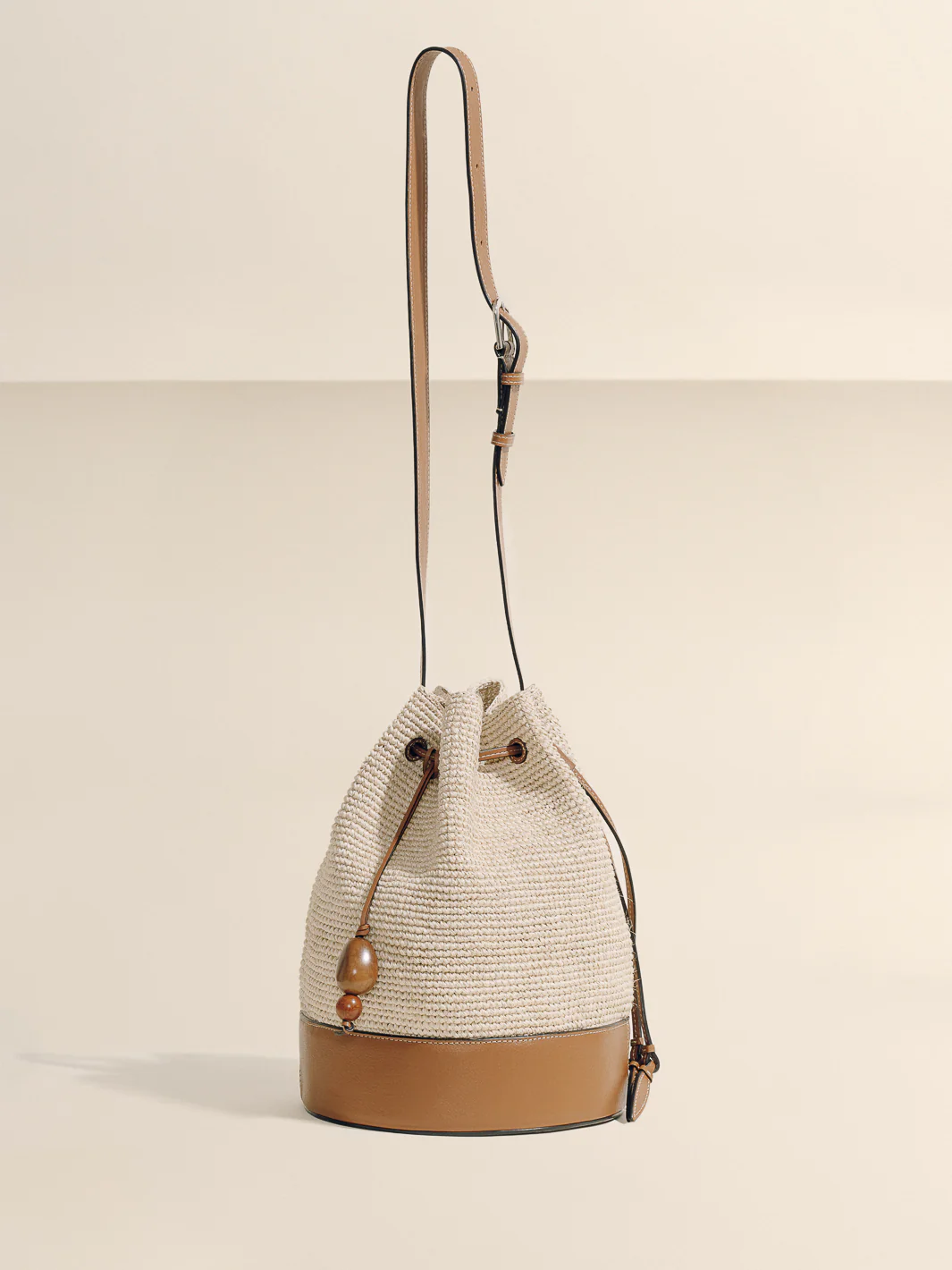 As pure in form as its organic materials, the Mochilla Bag offers an artful interpretation of an effortless, everyday silhouette. Crafted from woven platano and finished with sleek leather, this drawstring bag combines a modern mix of textures perfect for a range of occasions. A cluster of tagua seeds—native to Latin America—accent the tie with a nod to the natural world. Sized for a day on-the-go, its soft silhouette is designed without internal compartments for a relaxed shape that showcases its handwoven construction.